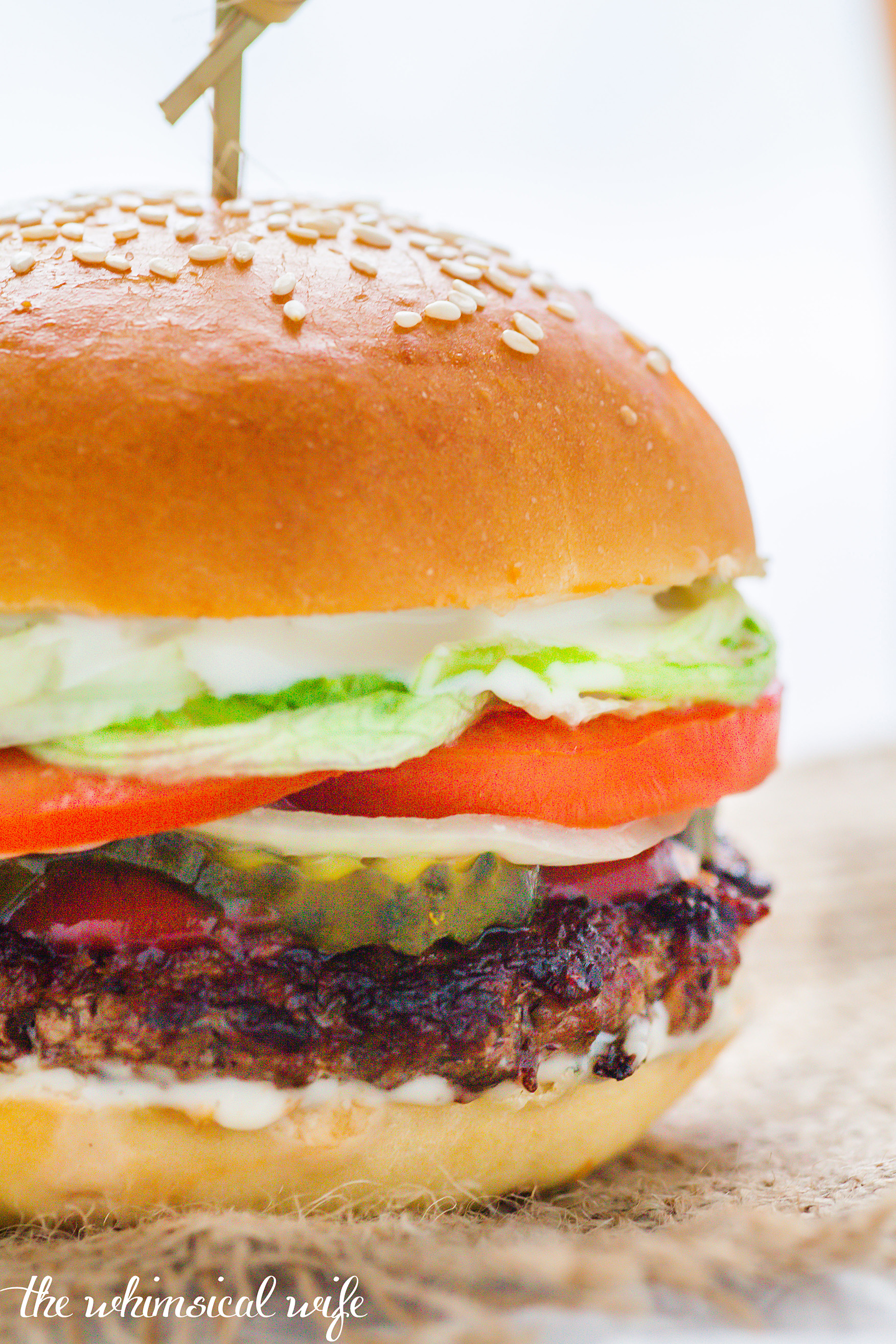 Guys, I made a homemade Whopper burger for you. Oh, the things I have to do to give you delicious food. Seriously though this was no trouble at all. I have a serious thing for Whopper burgers. I think I ate one nearly every month when I was pregnant with Little Miss A. It was hot chips and anything chilli related with number two and number one was just hot chips. There is something about the Whopper burger that just hits the spot for me. It's something to do with the combination of a smoky chargrilled patty, the tang of the tomato sauce, the crunchy lettuce, the bite of the onion and the creamy mayo oozing out the sides and let's not forget the gherkins/pickles. It has to have gherkins. You may not be a fan, but for me, it is what makes the burger. If I have chips on the side, I might even chuck a few in the burger as well. It's my guilty pleasure.